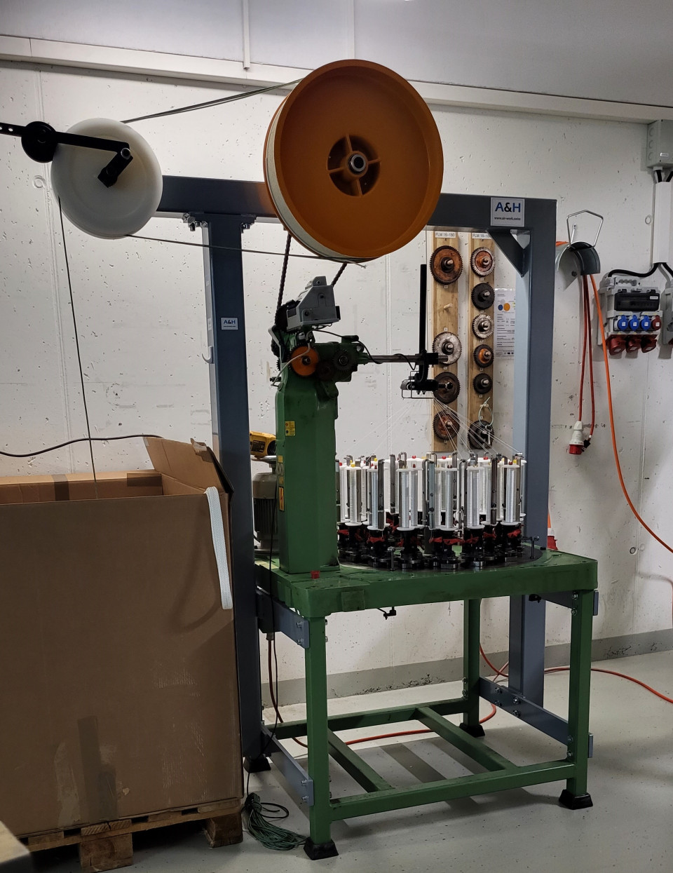 Seit Juli 2020 verfügen wir über einen eigenen Flechter (24-250), im Juni 2022 ist der 2. Flechter (32-100) in Betrieb gegangen. Im März 2023 gingen ein 16-180 und ein 48-100 in Betrieb. Grundsätzlich ist aber alles um das geflochtene oder gedrehte Seil herum Handarbeit.
